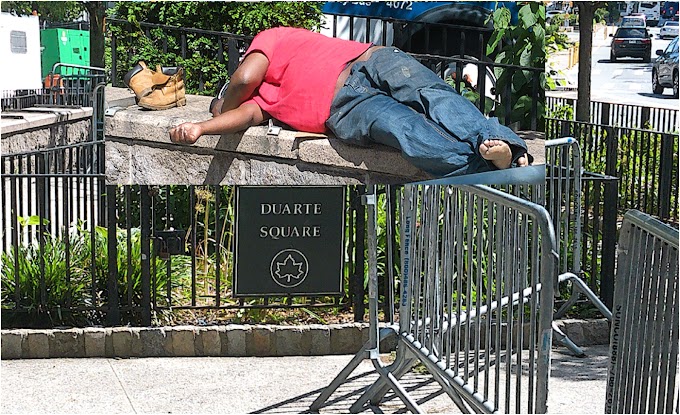 la paz aterrizan en la Plaza Las Américas en Alto Manhattan en busca de comida